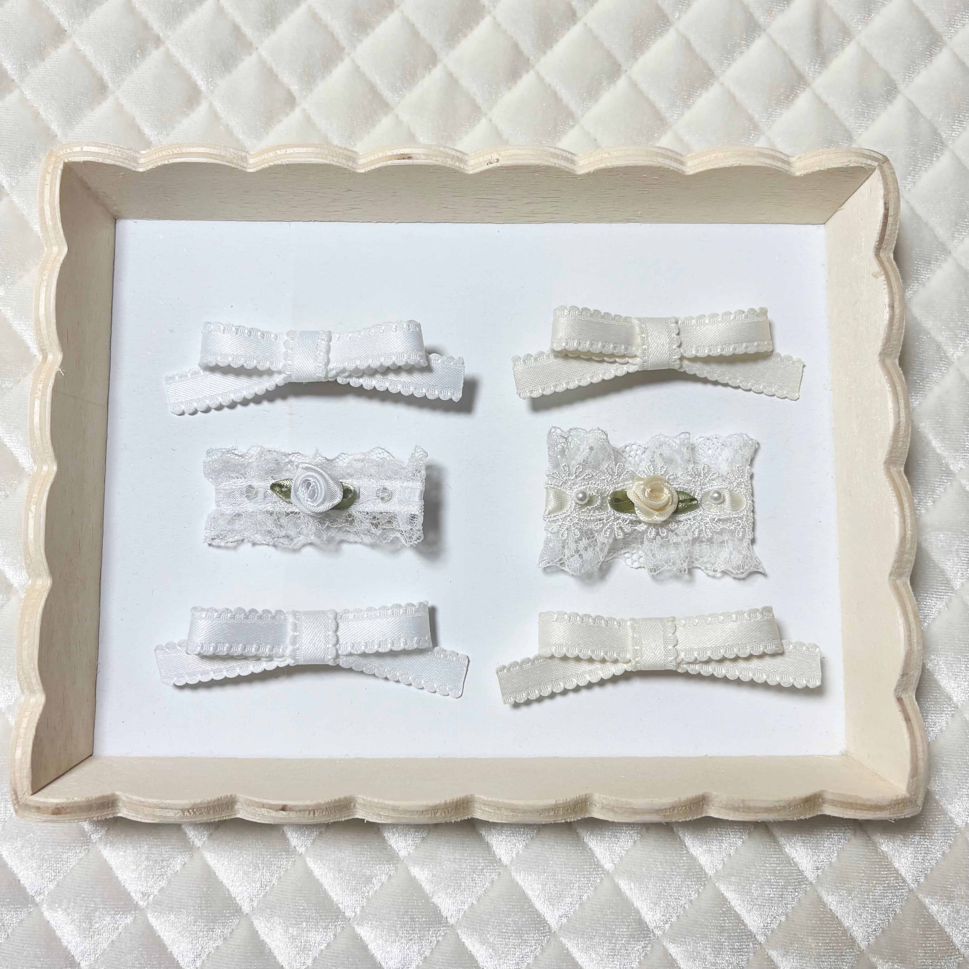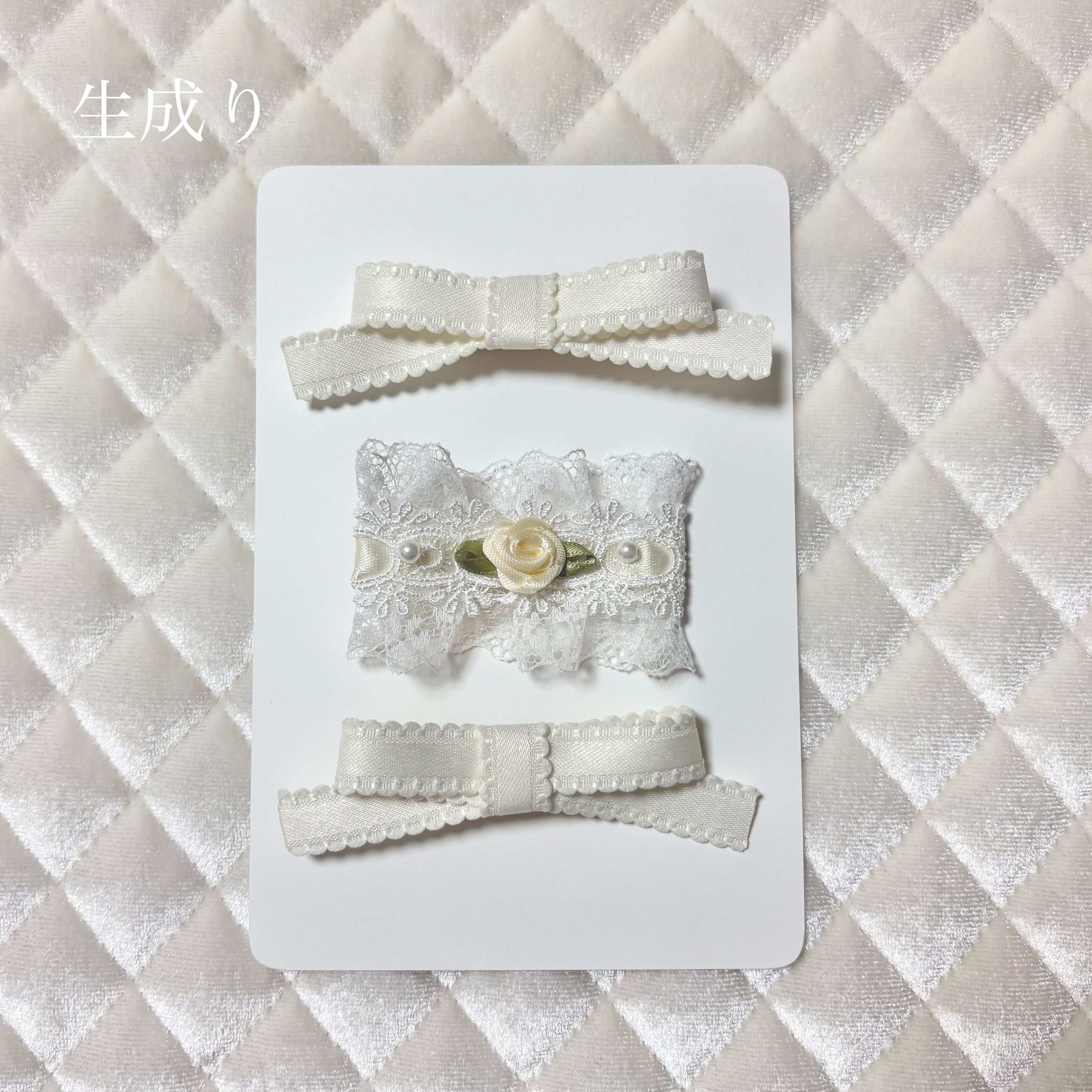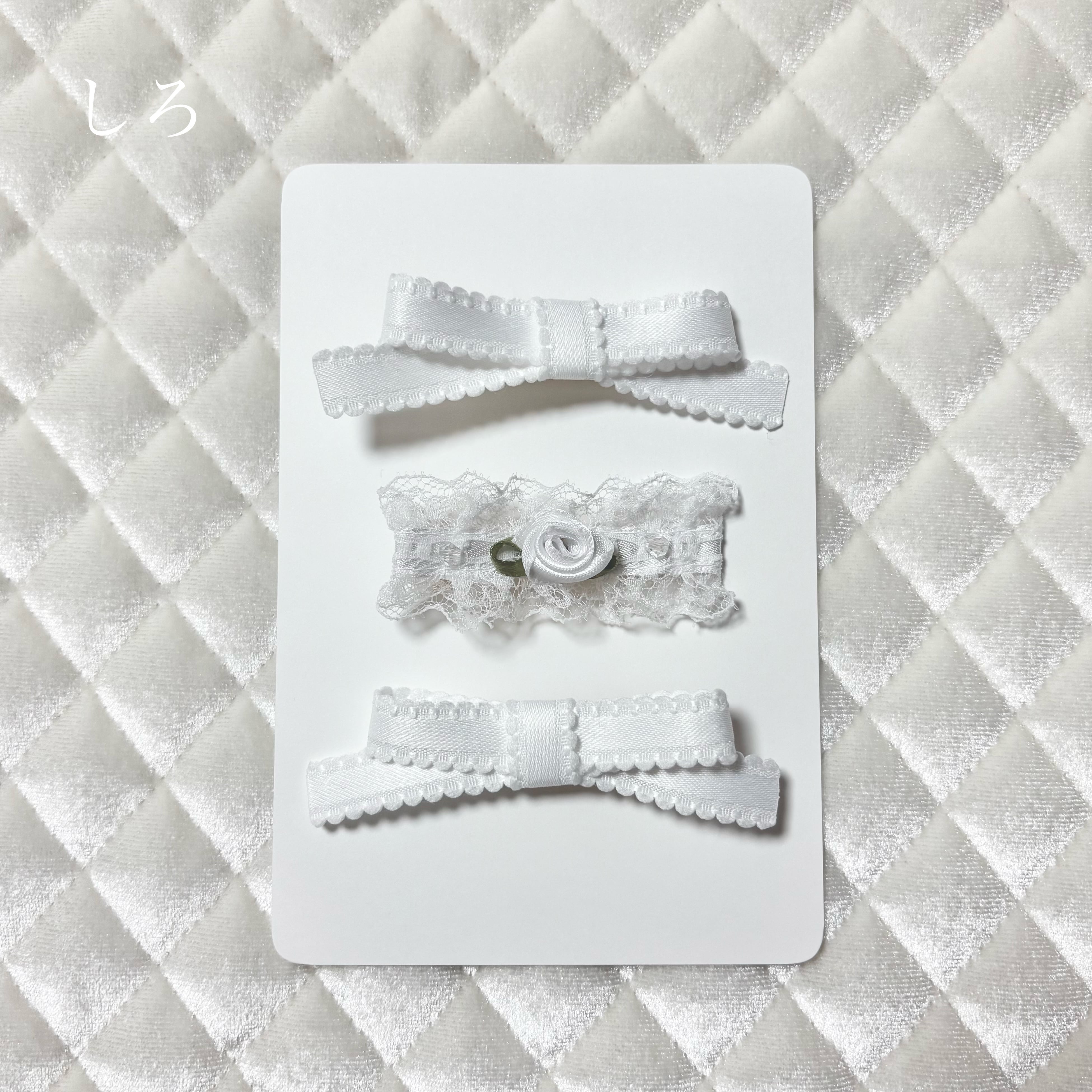 リボン2点と、レースモチーフ1点のヘアクリップ3点セット。
