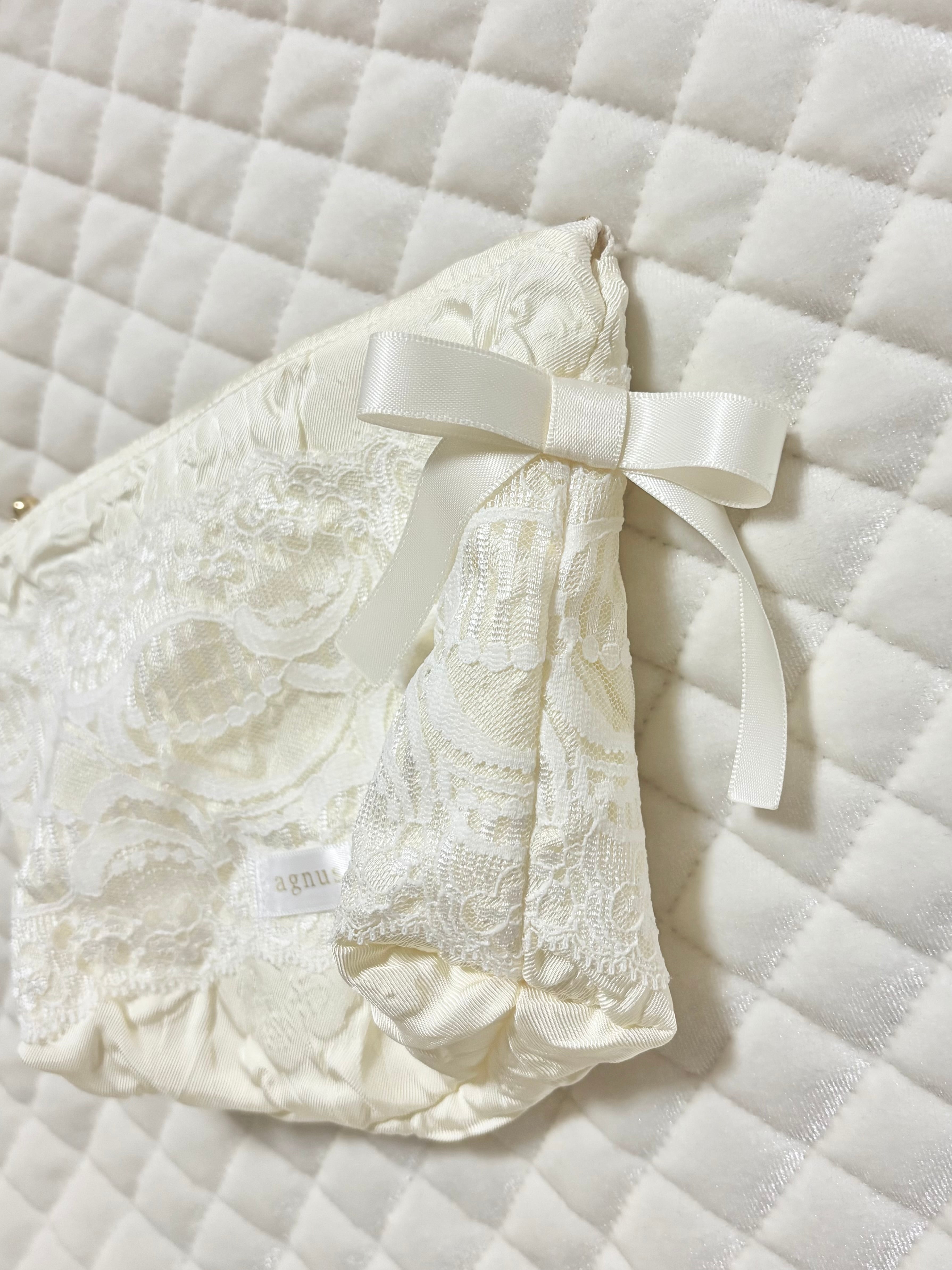 ぽこぽことしたかわいらしい生地にレースを重ね、サイドにはリボンをトッピングしクリームのように甘く仕上げております。